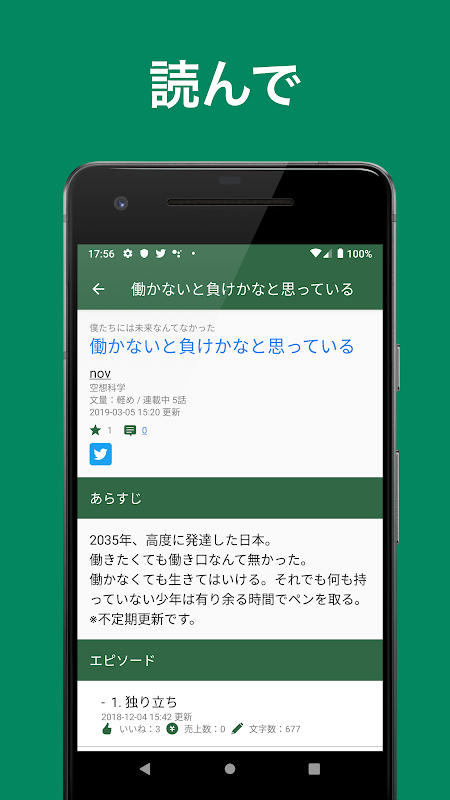 読んで、書いて、レビューする小説アプリです。基本無料。