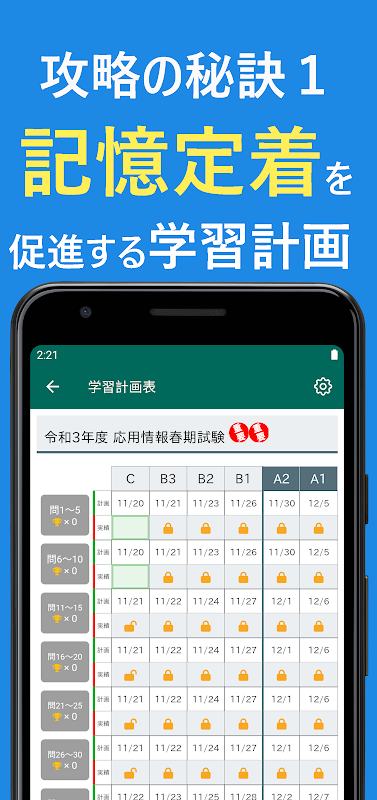 ≪面向2023年考試≫ 應用信息工程師 通過對過往題目趨勢分析和遺忘曲線的學習計劃,以及提醒功能,大大提高學習效率。瞄準最短的傳球。