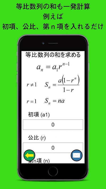 如果要計算輸入類型顯示在選定的數值不同的計算結果。例如,如果你想找到的等差數列的通項,然後選擇“算術級數”。然後,選擇它“從第一項和寬容問算術級數的總稱”,然後,變成值的輸入屏幕。請按計算按鈕,並輸入第一項和寬容。通用術語,將出現在屏幕下方的輸出部分。