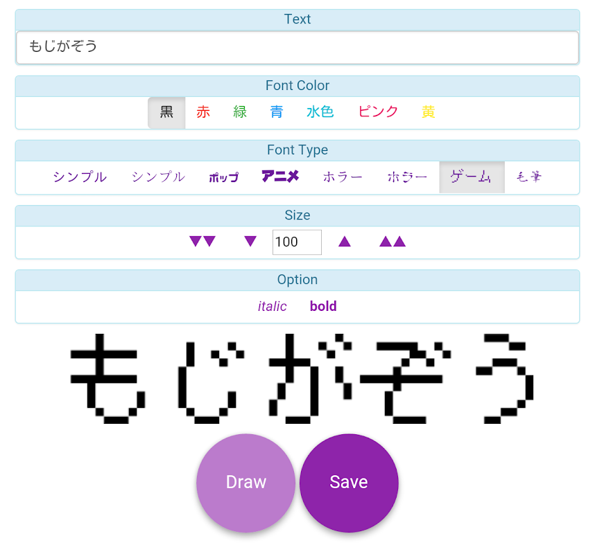 入力した文字を色、フォント、大きさ、斜字太字を設定して保存することができます。
