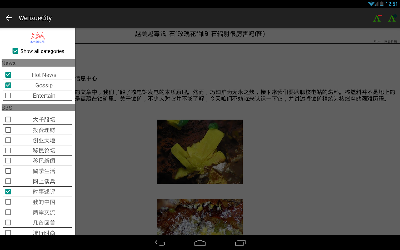 2. 这个浏览器可以在有WIFI的时候自动下载选取的新闻和版块,存储可以选择内部或者SD卡,可以选择多少时间同步一次,可以选择感兴趣的版块,可以选择下载几天之内的内容...那该多好!