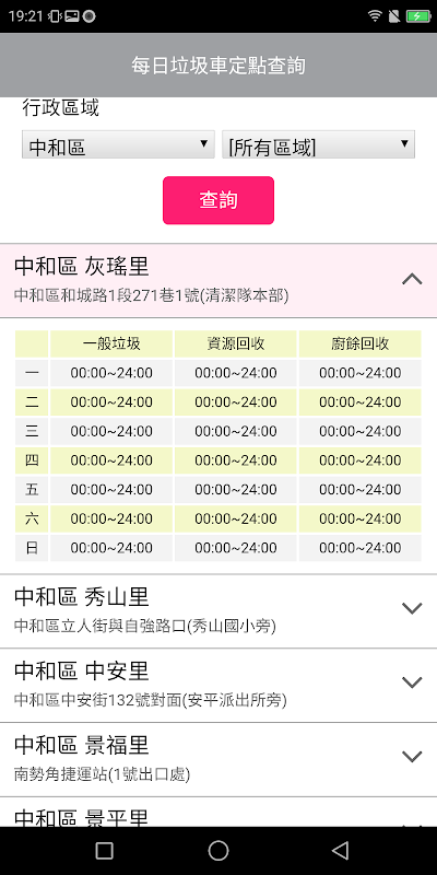 二、資料僅顯示目前出勤中之垃圾車,現行所在地位址,故不同時段,資料數會有明顯不同(每3鐘更新1次),甚至少數時段可能為零。