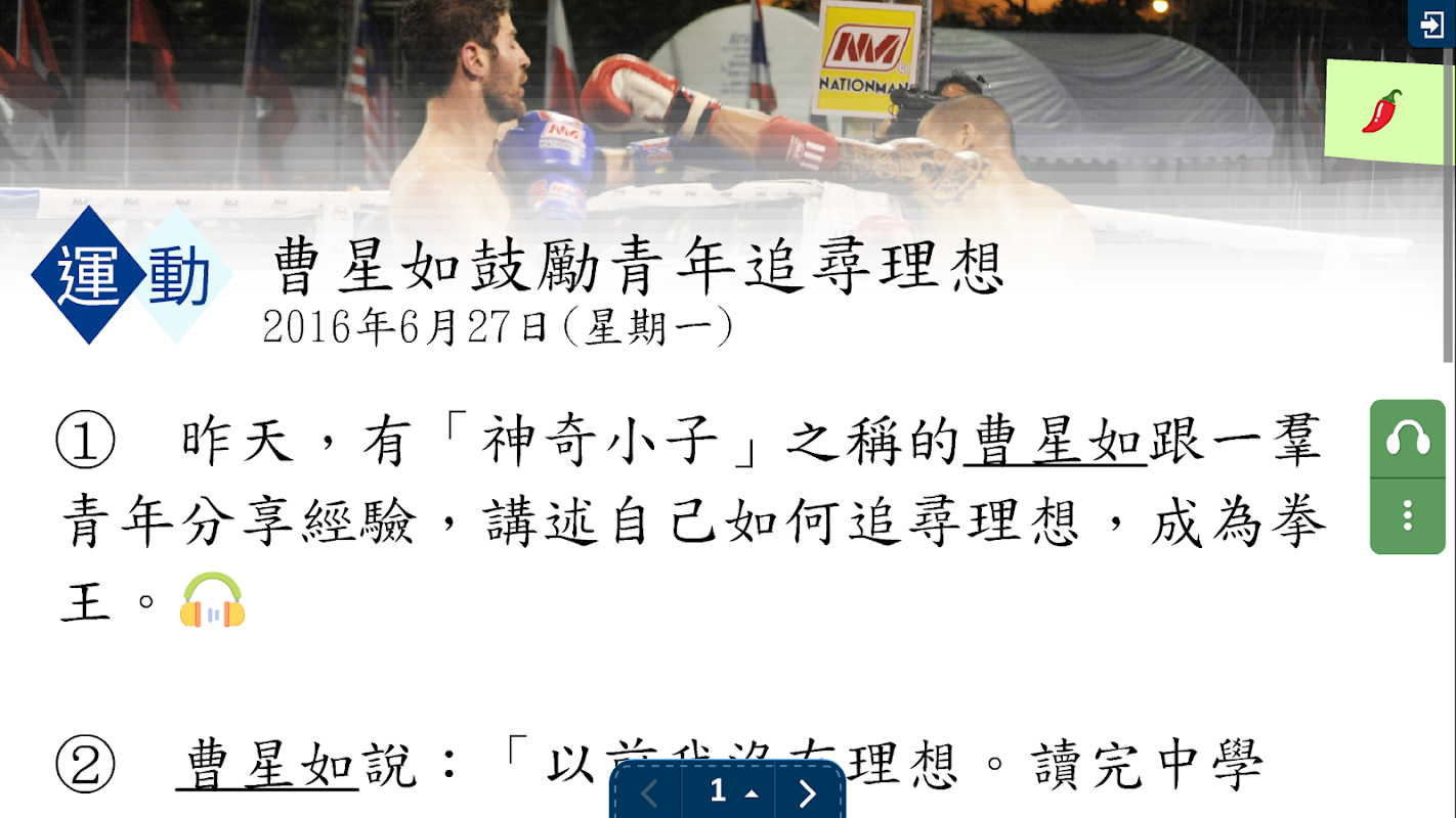 3. 閱讀篇章取材自《明報》新聞報道,內容與學生的生活息息相關,讓學生通過時事新聞學習語文,豐富實用詞彙,務求讓學生能夠學以致用,並打破語言文化障礙,融入社會。