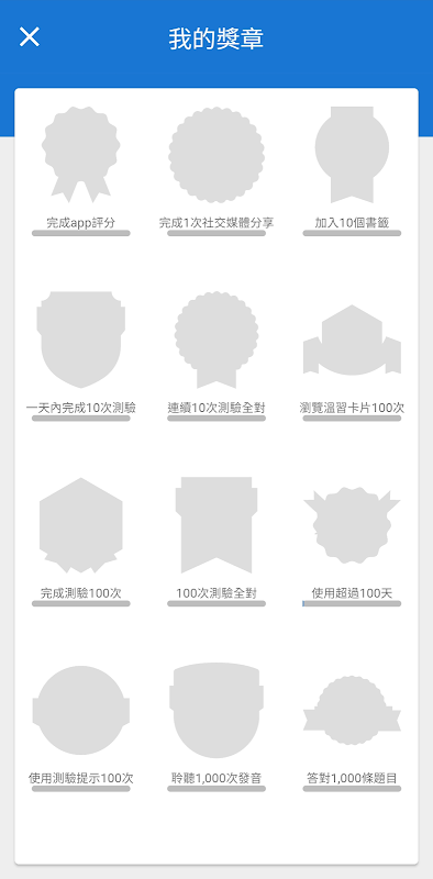 除溫習模式外,本應用程式亦提供測驗功能。使用者可以自行設定測驗題數,測試普通話知識。測驗成績會記錄在應用程式內,讓使用者重溫並掌握學習進度。為鼓勵使用者多學習普通話,本應用程式加入了獎章系統,只要完成特定目標就能獲得獎勵。