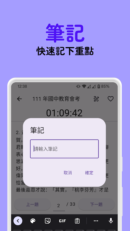 這是個具有試題、筆記、詳解等豐富功能的萬能會考計時器!
