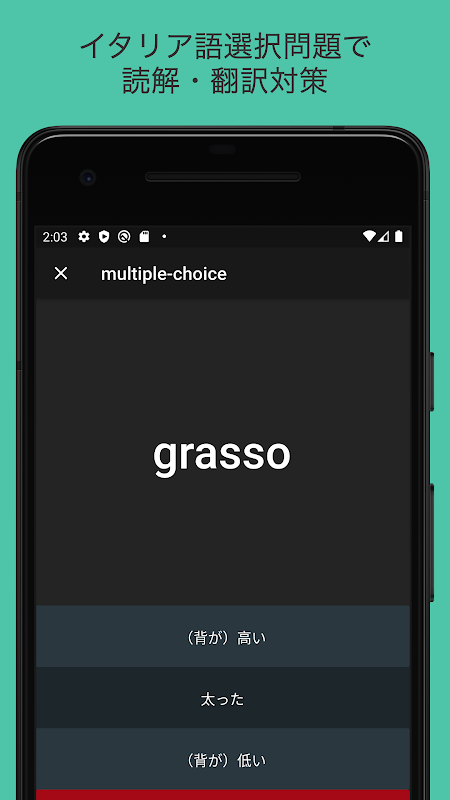 這是一個為意大利學習者(初學者到中級)學習重要單詞的應用程序。記錄約1500個單詞,意大利語(Iken)五年級至2年級,PLIDA:A1〜B1