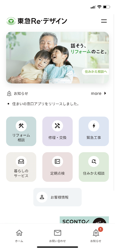 這是一個應用程序,用於引導東急Re・Design的客戶獲得支持住房和生活的服務。