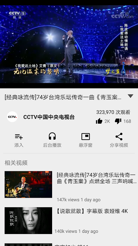 几百歌手,几万首经典老歌,还可以自己从Youtube视频库中挑选并创建歌单首页面会给您经常更新华人音乐界的趋势,例如中国最强音、我是歌手、中国好声音的视频