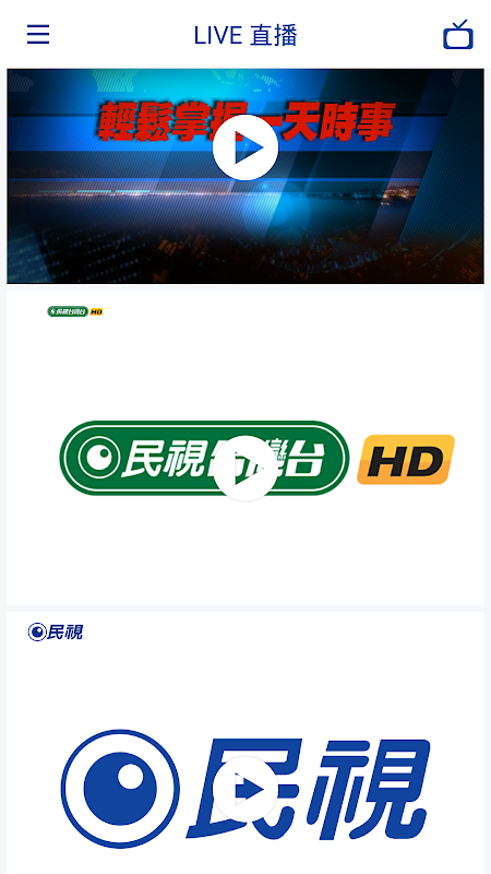 1.民視新聞Live直播:民視新聞台、民視台灣台、民視交通台、民視無線台及重大新聞現場直播。