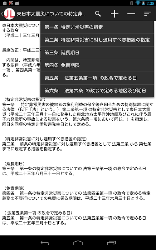 法令データ提供システムおよび国税庁の法令解釈通達に掲載されている法律・通達をオフラインで検索して表示することができます.すべてのデータをアプリ内に格納していますのでインターネット接続の有無や通信状態によらずすばやく表示することができます.データの正確性は保証いたしません.かならず掲載元をあたり確認してください.