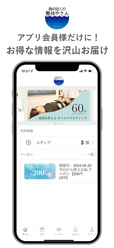 透過應用程序,您可以收到【海邊脊椎按摩店】的最新資訊和超值優惠。您也可以隨時透過智慧型手機查看菜單、所需時段並進行預訂。安裝應用程序,您可以更方便、更貼近地使用【海邊脊椎按摩店】。