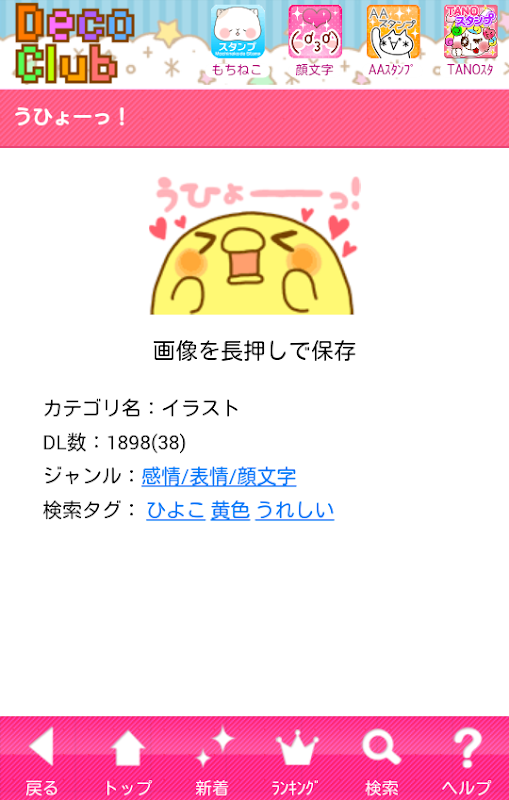 2.詳細画面のデコメを長押しして「画像を保存する」を選択します。