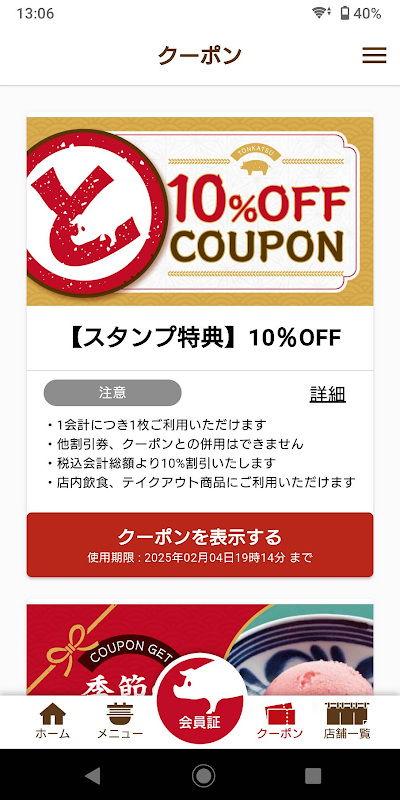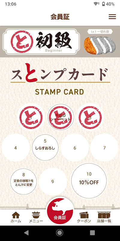 ・套餐、蓋飯、咖哩、兒童菜單各附贈一張印章,印章2張贈送時令冰淇淋、印章5枚贈送銀魚碎、印章8張贈送豚汁湯、印章10枚。的折扣券。另外,如果您保存 10 件或更多商品,您將獲得更好的優惠券。