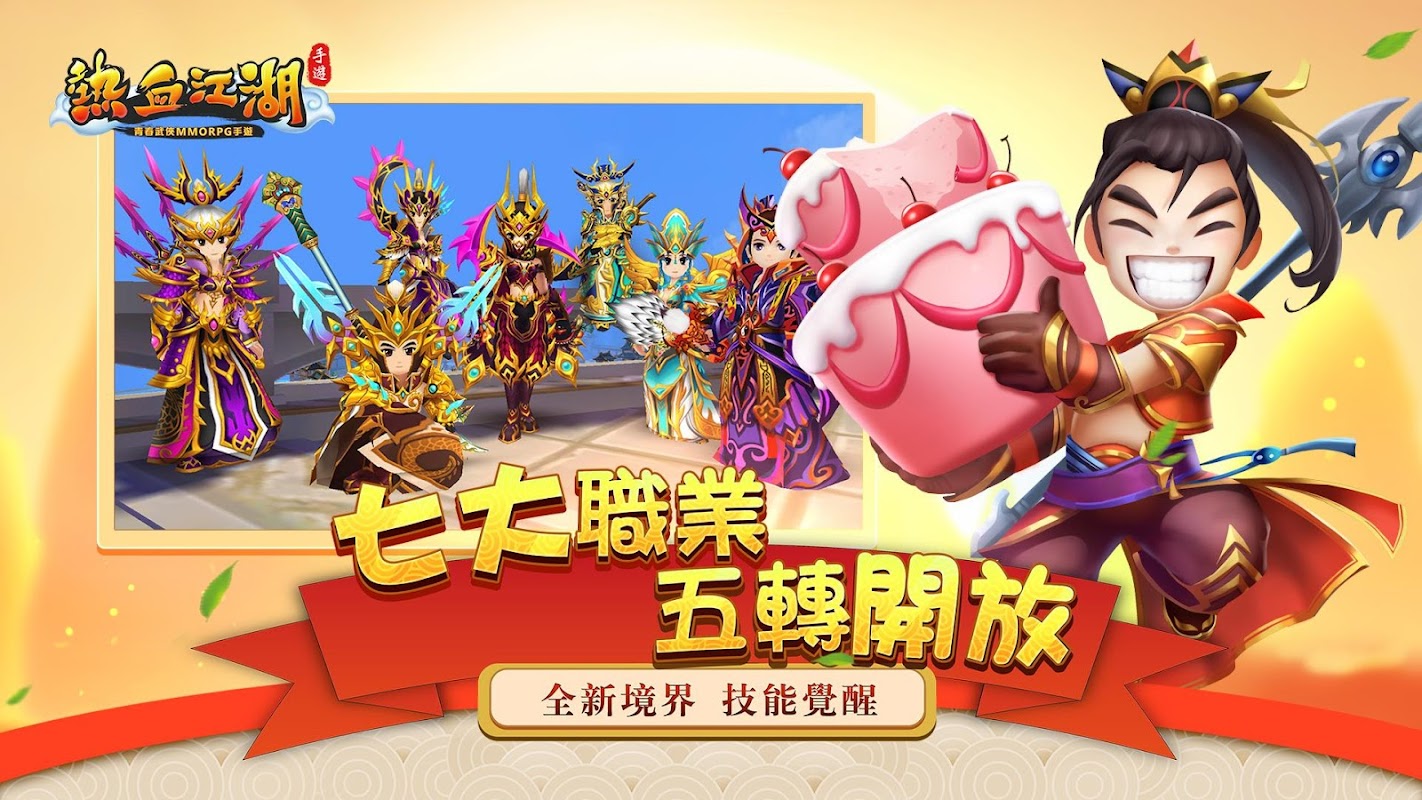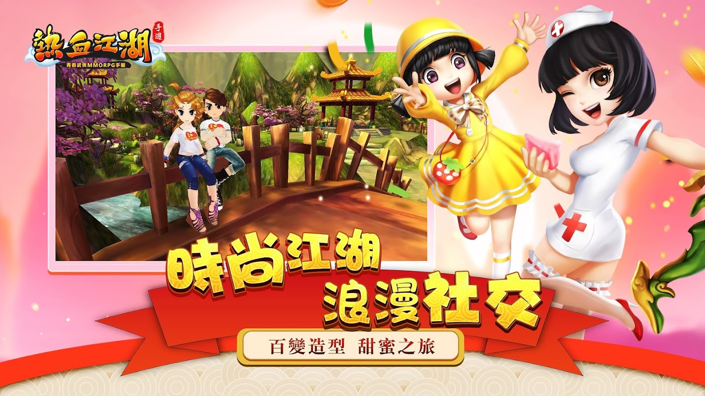 《熱血江湖手遊》是由官方唯一正版授權光譜資訊發行青春武俠MMORPG手游。清新明亮的遊戲場景活潑可愛的人物造型風趣幽默的遊戲,劇情構建出一個輕鬆愉快的江湖世界。