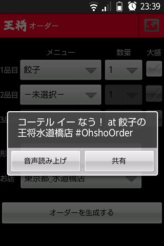 王将オーダーは中華料理チェーン「餃子の王将」でオーダー時に店員が使用する『王将用語』を生成するアプリです。