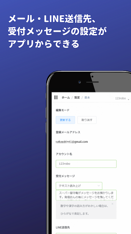 留守電がLINEやメールで読める:スーパー留守電 0.5