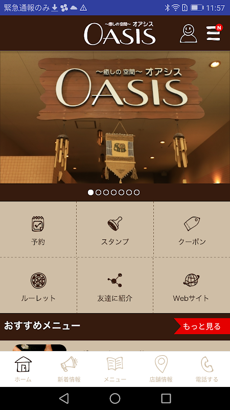 綠洲的康復空間綠洲官方應用程序已經出現。通過該應用程序,您可以在“治療空間綠洲”上接收有關新的有利信息的實時信息。此外,您可以隨時通過智能手機檢查菜單並檢查/保留所需的時區。通過安裝該應用程序,您可以更方便地使用“ Healing Space Oasis”。