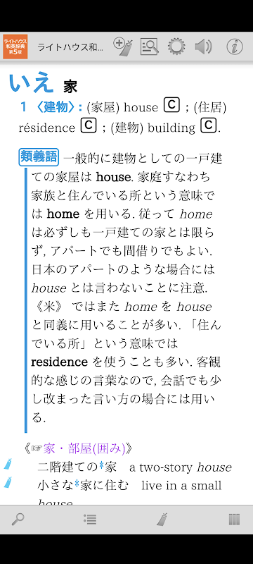 - 配備了在字典條目中部分搜尋範例等的功能。