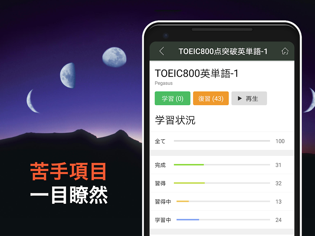 託業必看!完全免費的極其高效的TOEIC英語單詞應用程序。全面支持TOEIC高分學習!