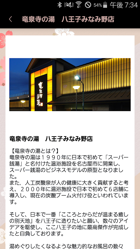 在2015年12月上旬開放日天然溫泉,Ryusenji熱水八王子市南野店原來的應用程序。