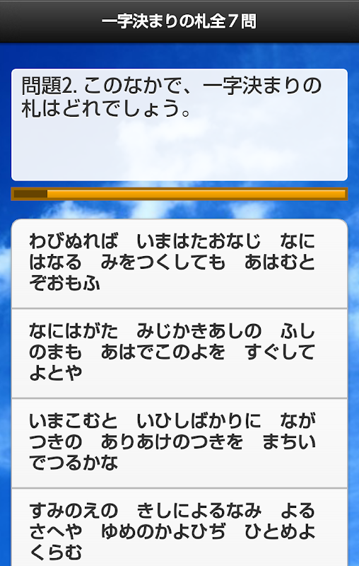 的小倉百人在競爭激烈的紙牌中使用,它做了一個測驗,將在競爭中被稱為“一個字符確定”七幫助。請高手反复。
