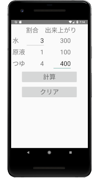 水(比率)= 3,湯(就緒)= 300,三步計算按鈕!