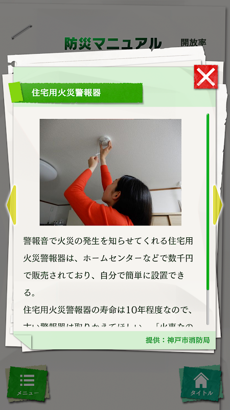 這是一個智能手機應用程序,可以在地震災害或火災時看到有用的信息。 防災/危機管理記者這是Sumi Watanabe先生和神戶市消防局編寫的全面防災手冊。