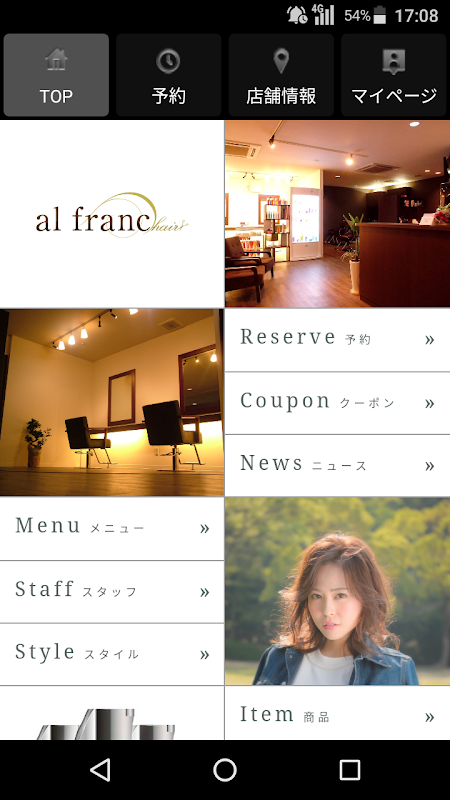 這是美容院,髮廊人法郎(Arufuran)的官方應用程序。