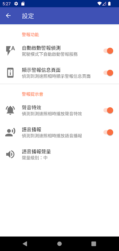 - 系統默認的警報由臺北市政府交通局公佈的測速照相和闖紅燈照相