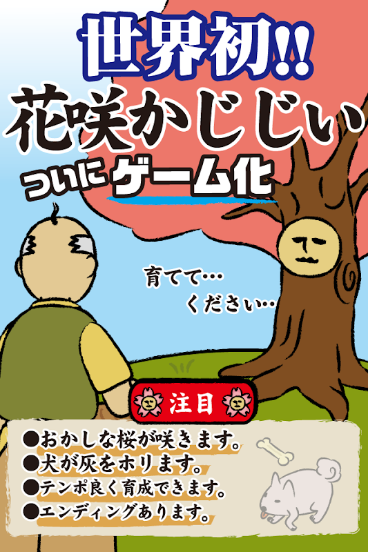 日本の昔話の代表作。あの「花咲かじじい」こと花咲じいさんが育成ゲームになって登場!