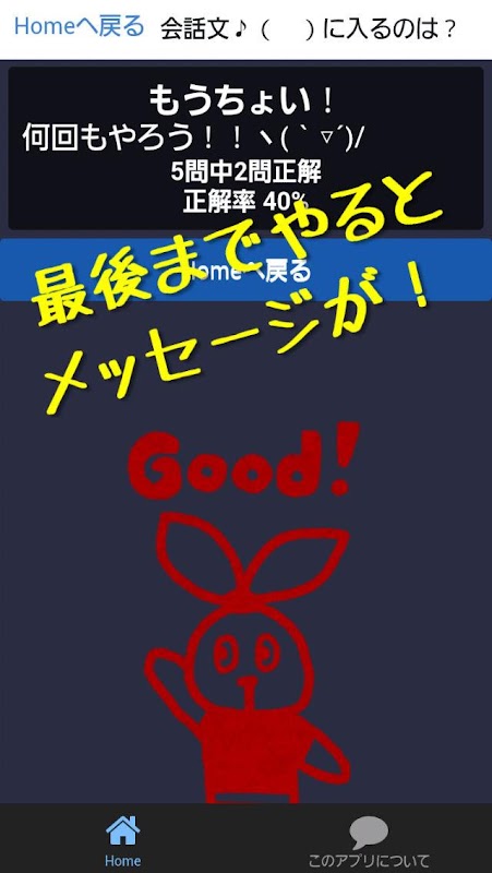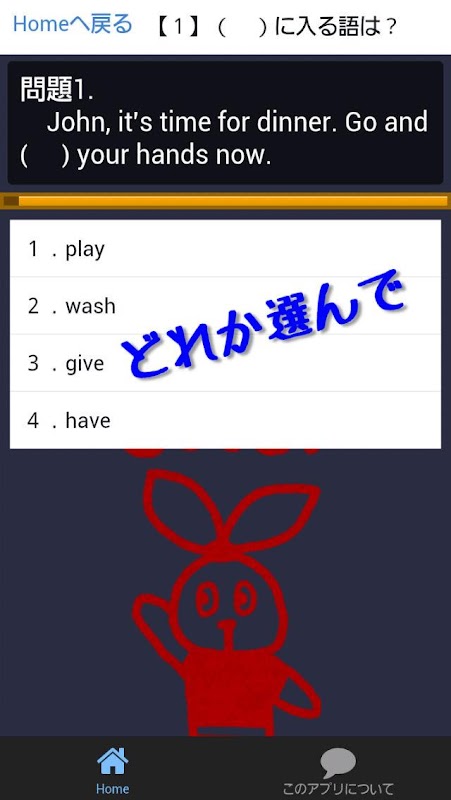 このアプリでは、英語の基礎的な内容、会話文の問題が取り組めます。