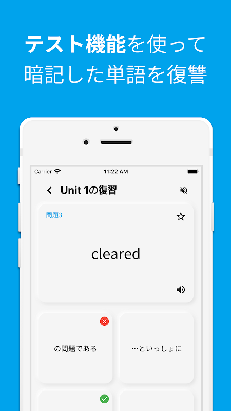 複習功能會向您顯示更多您經常弄錯的英文單字。如果您多使用該應用程序,它將成為一本適合您的專用英語詞彙書。