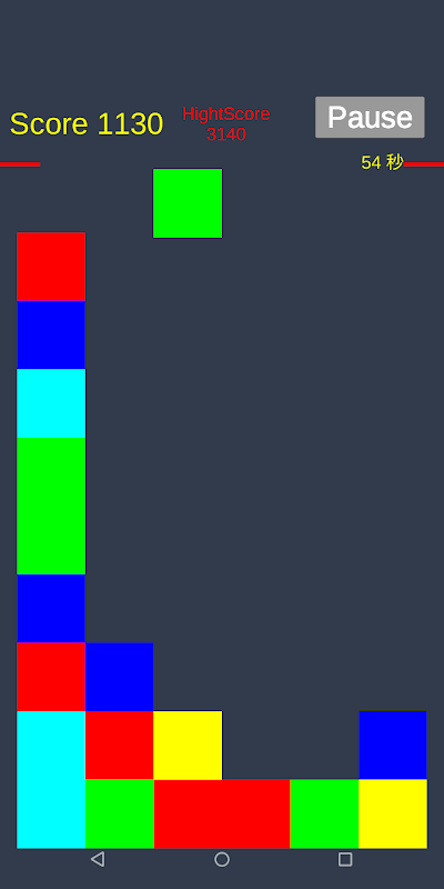同じ色のブロックが3つ以上隣り合うとブロックが消え点数を獲得できます。