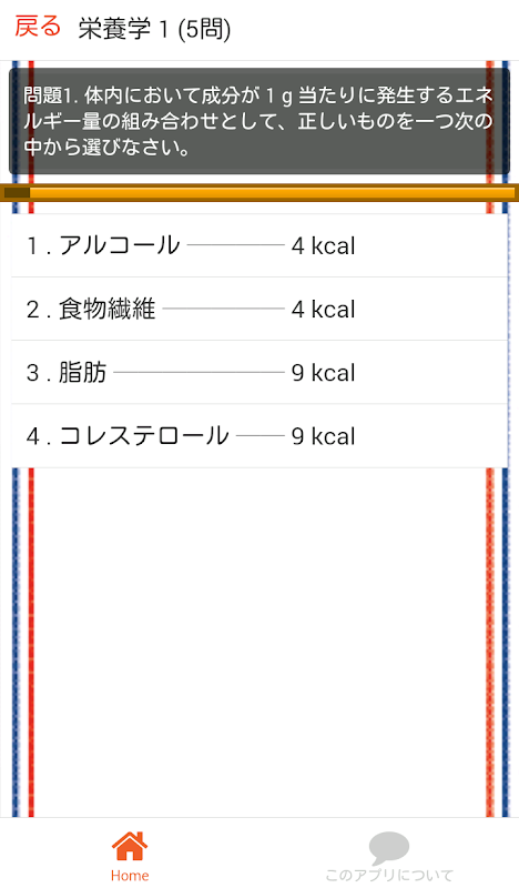 このアプリでは「 栄養学 」分野の出題になります。