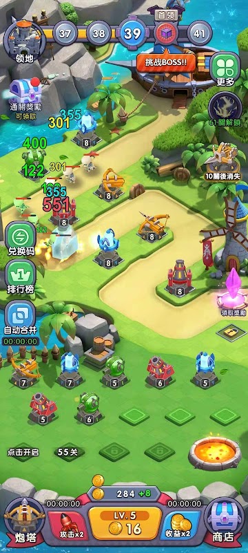佈置砲塔防線,合併升級砲塔,擊敗兇惡的boss,解鎖更先進的武器和科技。挂機戰鬥,無限升級。多樣策略、靈活搭配。超強科技系統,成倍提升你的戰鬥力。