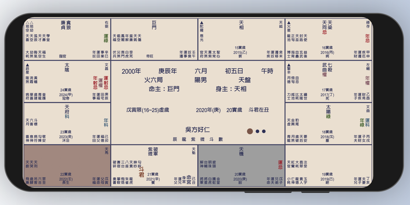 - 附設「人事十二宮定位訓練」及「四化定位訓練」小遊戲,寓娛樂於訓練,全面鞏固斗數基礎!