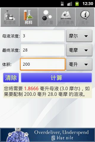 配溶液计算器是一个Android平台下方便溶液配制和稀释的计算器。它能够帮助上化学课或化学实验的学生,和在生物、化学、生物化学实验室工作的科研工作者。配溶液计算器可以帮助您快速计算所需的化学品的重量,或者所需的母液体积。