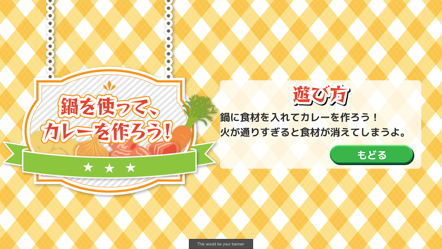 鍋に具材を入れて、カレーを完成させる簡単なゲーム!