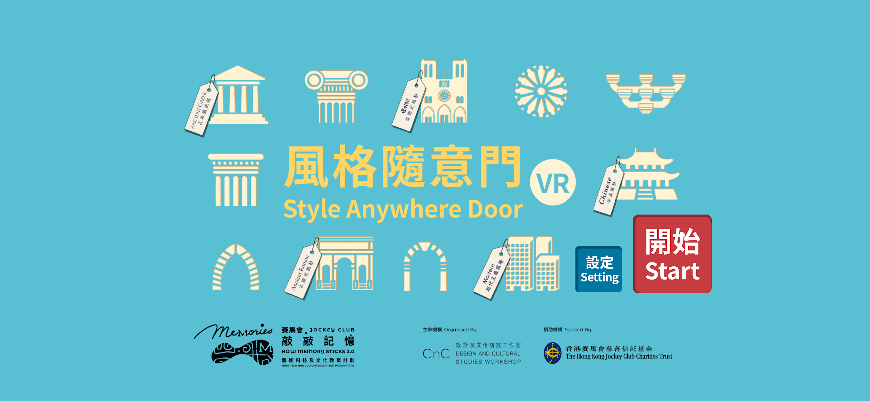 風格隨意門VR是由香港賽馬會慈善信託基金捐助,設計及文化研究工作室主辦的「賽馬會『看得見的記憶』藝術教育計劃」開發的互動應用程式,期望透過虛擬實境(VR)技術讓公衆身歷其境,走進著名的建築空間,發現建築風格背後的文化記憶。