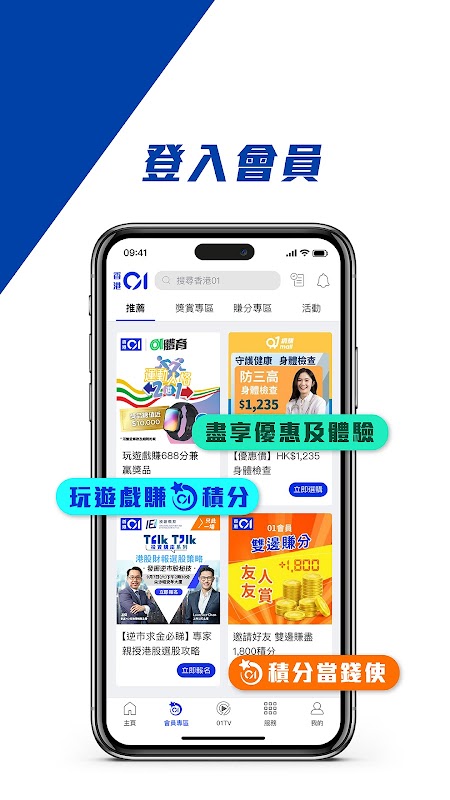會員專區:註冊成為01會員,尊享驚喜優惠及獨家活動。並可從多項活動中賺取「01積分」,換取種類豐富的禮物及以分消費。