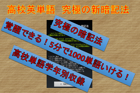 高中終極的新方法記憶英語單詞! 它的目標是在5分鐘內1000字。 如果學習在此應用程序的英語單詞,有“在5分鐘內1000字”的最終確認將成為可能。