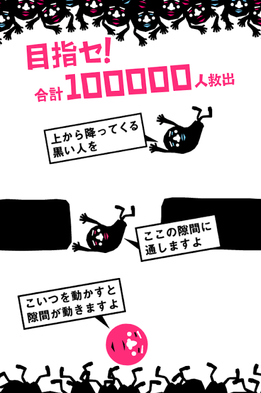 黑衣人正在下降越來越多的頂起! 因為它是弱的孩子當場死亡,如果你碰了壁, 移動到左邊或粉紅色的球權,我會通過牆上的縫隙通過。 瞄準“10億人的救援”