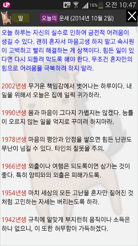 6) 오늘의 운세를 봅니다.