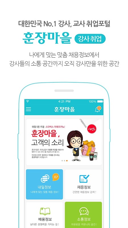 훈장마을이 만든 대한민국 강사들이 수다 떨고 취업할 수 있는 강사취업 앱을 런칭했습니다.