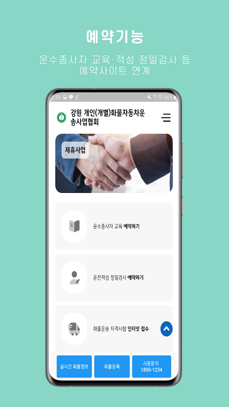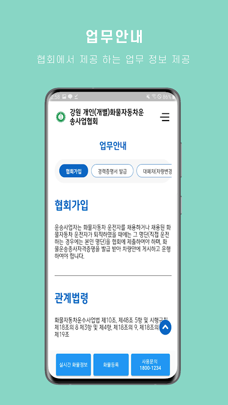 ■ 江原道個人(個人)貨物運輸業協會網站的主要服務已經實現為應用程序,以便可以在移動設備上使用。
