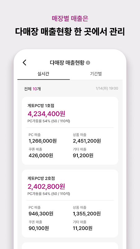 - 您可以輕鬆查看即時銷售情況以及按期間比較銷售情況。