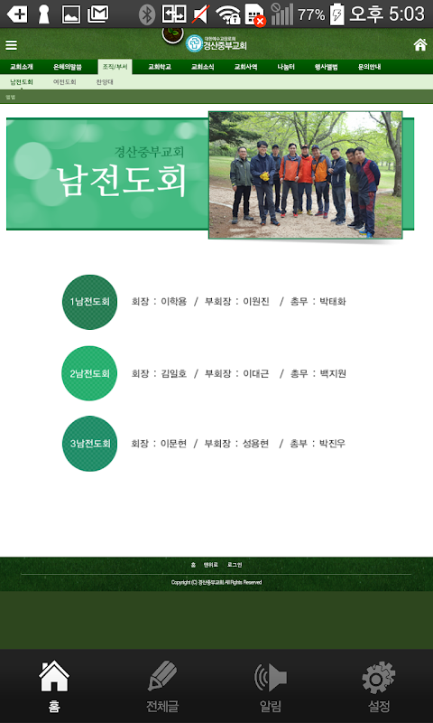 * 게시물, 사진 등록 : 글쓰기가 가능한 게시판과 앨범에서는 앱에서 직접 글등록 및 사진을 찍어서 바로 등록이 가능합니다.