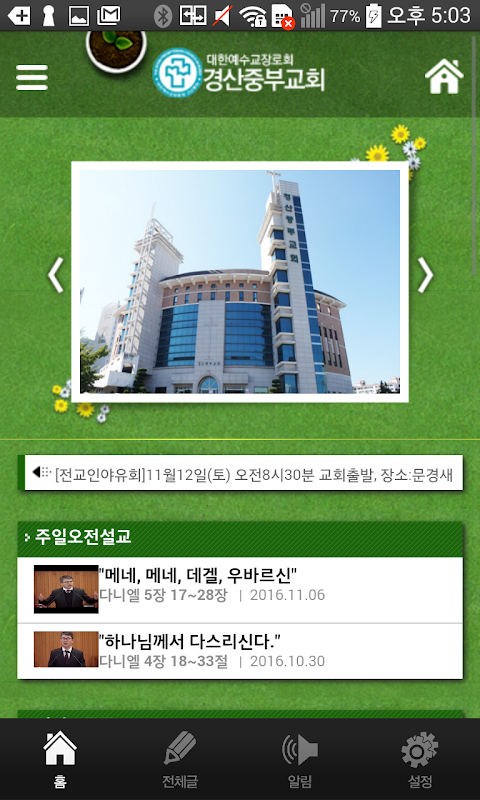 * 100% 연동형 앱 : 홈페이지에 등록된 내용, 게시물, 설교영상, 사진 등의 콘텐츠를 앱과 100% 연동하여 실시간으로 앱을 통해 확인할 수 있습니다.