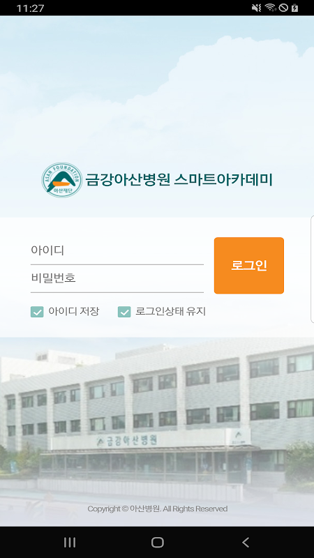 PC환경의 금강아산병원 사이버연수원(http://kgamc.hunet.co.kr)의 아이디와 비밀번호로 로그인 가능하며, 주요 서비스를 본 모바일 앱에서도 사용하실 수 있습니다.