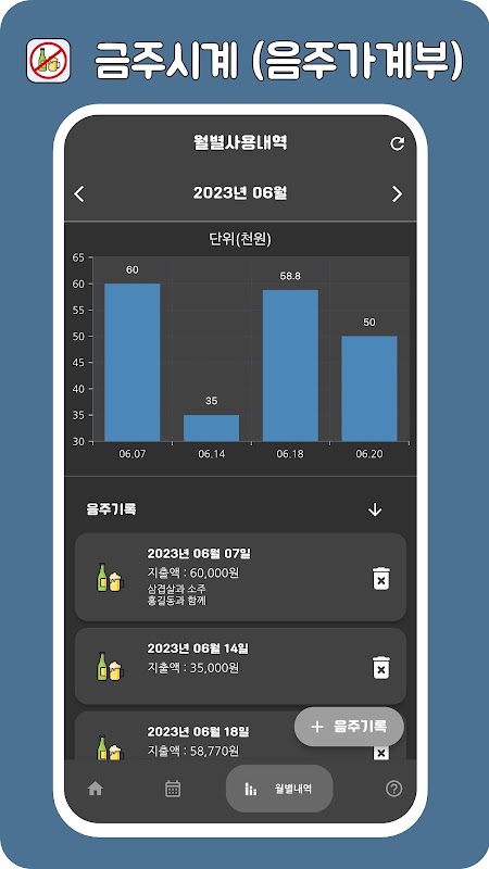 음주 가계부를 통해 음주기록을 저장하실 수 있습니다.